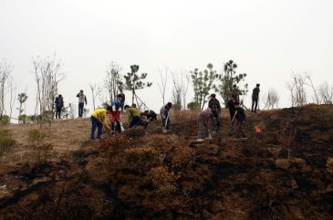 3月12日中午12:20分,在院团委、学生会的统一带领下,入党积极分子以及青年志愿者协会学生代表等80余人在风华园门口集合,分为若干个小组,带着工具分别赶往观滟台、浣笔溪、图书馆东面等预定地点开展植树。