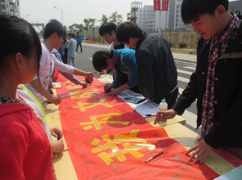由于活动之前做了充分的宣传工作,此次活动得到了广大学生的热情响应, 来参加签字活动的同学非常多,现场们十分积极热情地为参加签字的同学递笔、拍照等。同时也吸引了大量路过的同学前来询问和了解此次活动,并且都积极地参与了进来,表现出了极大的热情,活动现场的气氛十分热烈。此外,学院院长张伟林、常务副院长程勇、副院长杨伯源、院长助理柏耀文等领导,以及各部门负责人、各系辅导员和班主任老师们也来到了活动现场,在条幅上郑重签下自己的名字。