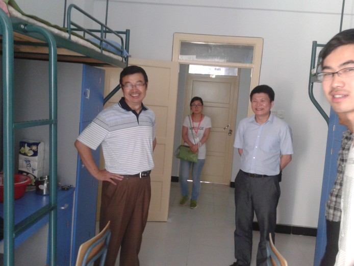 张伟林一行先后查看了暑期新建宿舍3号楼与暑期粉刷一新的宿舍1、2号楼,对新生及其家长的到来表示亲切的慰问。在宿舍里,领导们和新生及家长亲切地拉起了家常,问候了大家的生活习惯与日常起居,并嘱咐同学们要努力学习,健康生活。领导们十分关心新生之间的沟通交流与辅导员班主任对班级的日常管理,要求辅导员老师们要坚持经常进入学生宿舍,关心学生的生活,了解学生的想法,解决学生的困难。整个检查过程其乐融融,现场气氛十分融洽,大家纷纷表示对学院的迎新工作十分满意,并共同期待新学期会有崭新的一番气象。