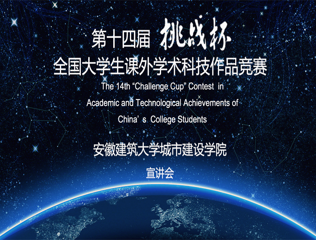 2014年1230日中午12点半,值此辞旧迎新之际,我院召开第十四届全国大学生挑战杯安徽建筑大学城市建设学院宣讲动员,学生处副处长林岳主持宣讲会,并以自己的参赛经验鼓励同学们积极备战。
