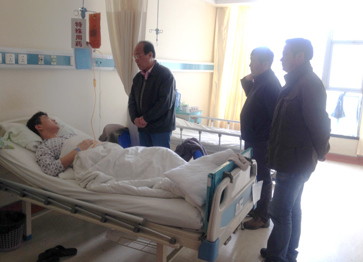 4月8日下午,我院副院长程勇、机械电气工程系主任黄曼平、学生处处长侯为民及团委书记王利康在学生辅导员姜若兰同志的陪同下,前往合肥市滨湖医院看望生病住院的段奇耀同学。