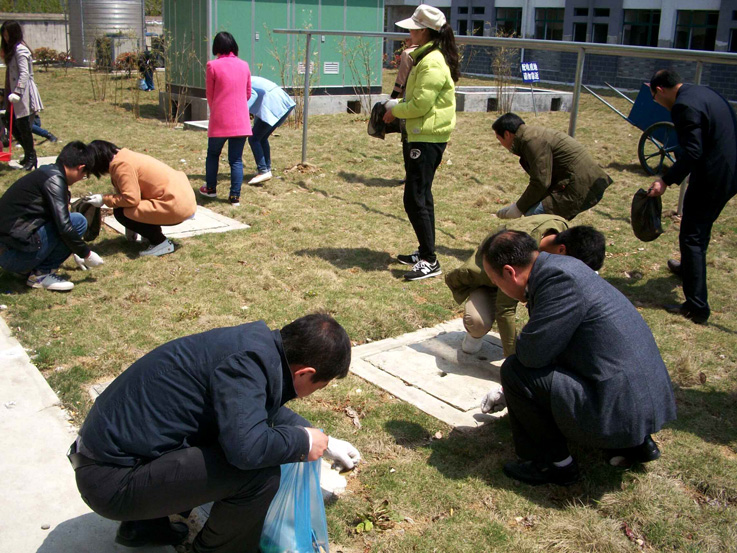 当天,安徽建筑大学城市建设学院院长张伟林、执行董事赵治滨、副院长程勇、王志建等领导及院办主任魏宪友、学生处长侯为民带领全院辅导员来到学生宿舍三号楼前,用手将草坪上的废纸及杂物一一捡起来。看着院领导及辅导员们认真又忙碌的身影,路过的同学们也有了身为校园一份子的责任感和使命感,纷纷驻足积极踊跃地参与到活动中来。随着主动参与进来的学生越来越多,很快的,原本“满目疮痍”的草地又恢复了勃勃生机。