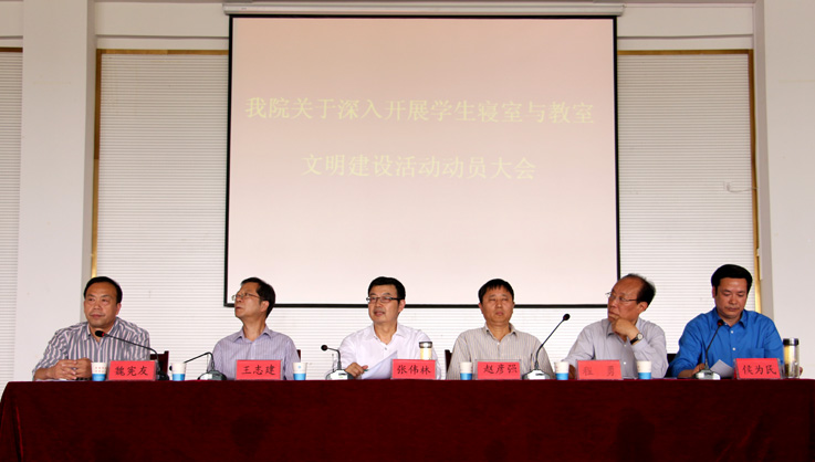 安徽建筑大学城市建设学院院长张伟林,党委书记副院长赵彦强,副院长程勇、王志建等出席动员大会,“两室”文明建设工作领导小组全体成员以及全体学工秘书、学生干部、寝室长参加大会。会议由办公室主任魏宪友主持。