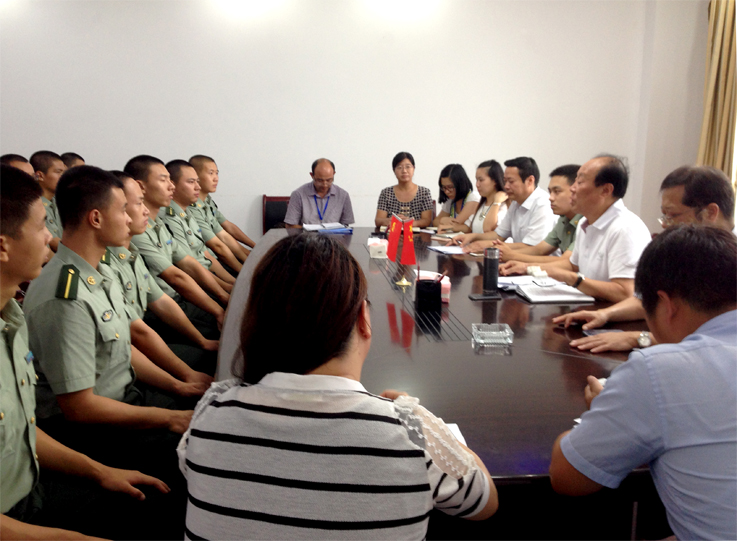 下午,学院领导与本次承训单位中国人民解放军陆军军官学院团长杨柳及20多位教官举行见面会。我院新生军训工作领导小组相关成员出席会议。