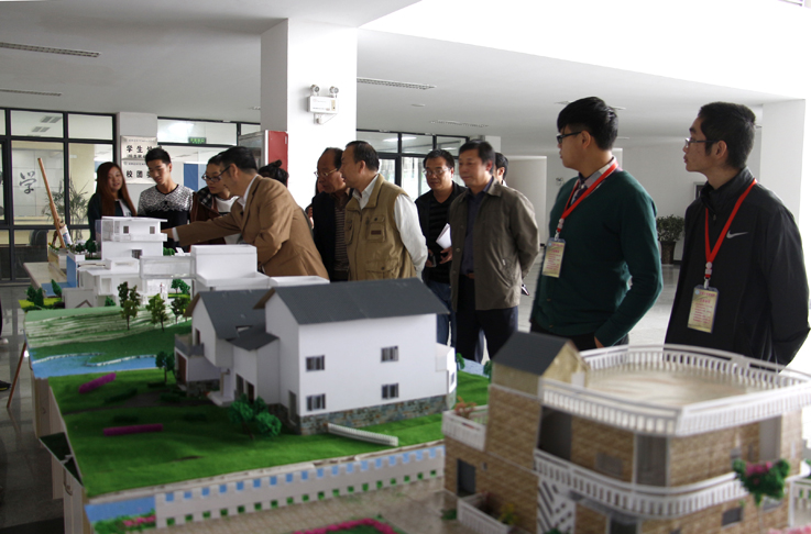 启动仪式后,翟年俊、郭锐在我院领导的陪同下,参观了建筑与艺术系举办的优秀设计作品展。