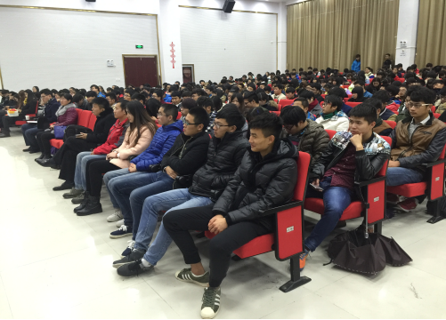 王达敏教授在中国现当代文学研究领域,享有广泛盛誉,是安徽省有突出贡献的专家。漫天风雪,也阻挡不了一个人文学者传播文化思想的脚步。王达敏教授叙事简洁生动,他娓娓道来,讲述了余华走上文学创作道路的往事,说到余华由牙医转到写作状态的朴素历程,同学们聚精会神,露出了会意的微笑。王达敏教授肯定了余华对生命尊重的人道主义情怀,认为尊重生命的本身就是一种最高层面上的人道主义。王达敏教授以余华为引子,以宽广的文学视野,从西方现代派小说、俄罗斯文学和拉美文学的魔幻现实主义到中国本土当前小说的创作,在世界文学背景下,指出了中国当前小说创作的新方向。他谈到莫言、贾平凹、毕飞宇等一系列小说家的写作特点,分析了一些经典小说片段所蕴含的人道主义情怀,令我院学子耳目一新,五百多人的礼堂,暖意融融,同学们跟着王达敏教授的思路,享受了一次丰美的文化精神大餐。