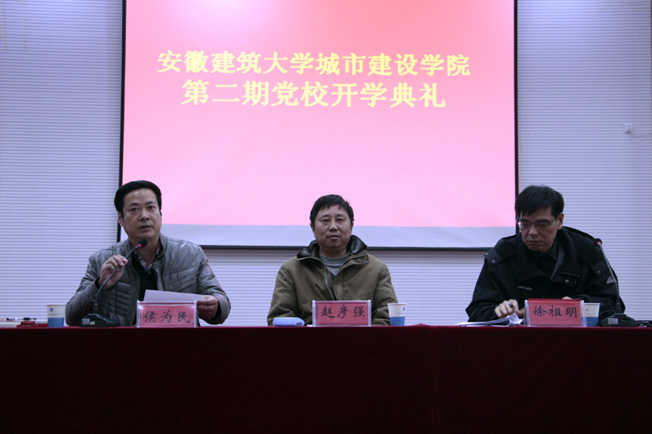 11月29日,我院第二期党校开学典礼在图书馆二楼报告厅隆重举行。院党委书记赵彦强、安徽建筑大学党委组织部部长徐祖明出席开学典礼。开学典礼由学生处处长侯为民主持。