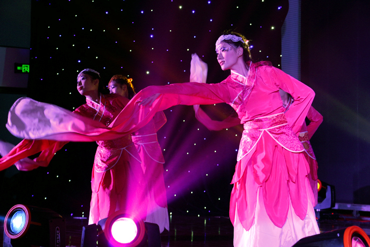 此外,安徽建筑大学的教职工及艺术团也带来了精彩的节目。教职工团队的舞蹈《太湖美》,起舞翩然、婉转优美;艺术团小品《音药大师》集小品的欢乐与小提琴的优雅于一体,让人耳目一新。说起晚会上最令人震撼的节目,必定数安徽建筑大学艺术团带来的荧光舞:五个蓝光人在黑幕中忽隐忽现,荧光与街舞完美结合,带来绚丽的视觉冲击,赢得了台下观众无数的尖叫与喝彩。
