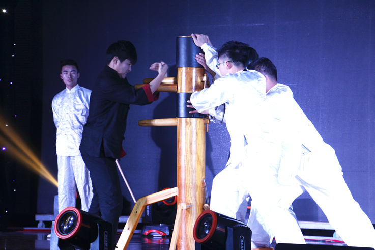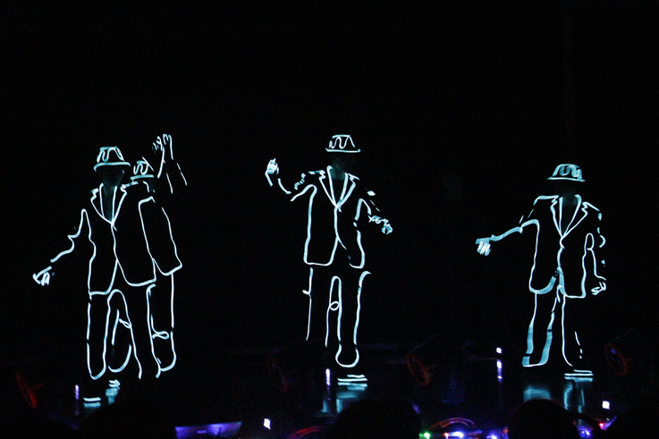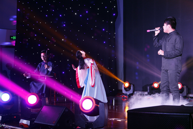 此外,安徽建筑大学的教职工及艺术团也带来了精彩的节目。教职工团队的舞蹈《太湖美》,起舞翩然、婉转优美;艺术团小品《音药大师》集小品的欢乐与小提琴的优雅于一体,让人耳目一新。说起晚会上最令人震撼的节目,必定数安徽建筑大学艺术团带来的荧光舞:五个蓝光人在黑幕中忽隐忽现,荧光与街舞完美结合,带来绚丽的视觉冲击,赢得了台下观众无数的尖叫与喝彩。
