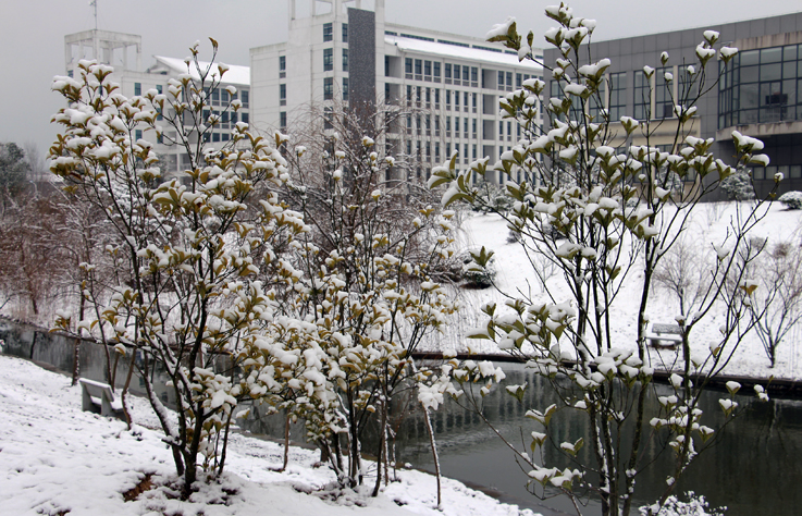 白雪皑皑,银装素裹,飞珠溅玉,天地一色。一夜之间,仿佛做了美容似的,大地万物顿时冰清玉洁,素雅美丽。观远方,但见“千峰笋石千株玉,万树松罗万朵云”;看近旁,只见“旋扑珠帘过粉墙,轻于柳絮重于霜”。犹如一个个百变小精灵,一下打破了冬的沉闷和寂静,寒冷凝固的风景忽然间变得有了生气和灵性。