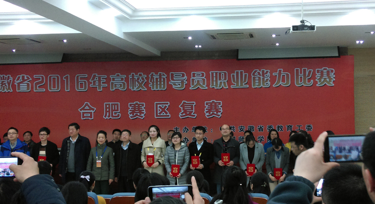 3月11日至13日,由省委教育工委、省教育厅主办、合肥师范学院承办的2016年安徽省高校辅导员职业能力比赛(合肥赛区)复赛在合肥师范学院锦绣校区隆重举行,共有来自合肥片区43所高校选拔出的56名辅导员参赛。我院管理工程系辅导员葛英刚参加了此次比赛