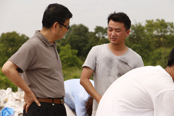 7月7日,连日的暴雨过后,天气放晴,但巢湖水位仍在不断上涨,防汛形势依然严峻。我院抗洪抢险预备队在当地政府与学院的统一组织下,分批前往巢湖附近堤坝,将砂石分别装袋、扎紧,然后集中运往抗洪前线。