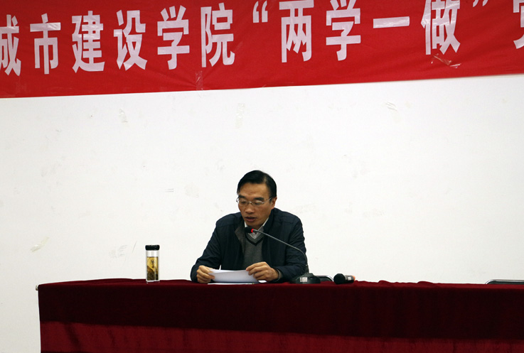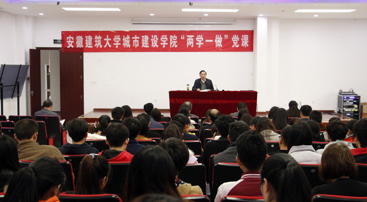 根据学院相关工作安排,我院于11月17日下午,在图书馆一楼报告厅开展“两学一做”党课教育活动。本次党课由安徽建筑大学党委常委、副校长孙道胜主讲,院党委副书记魏宪友主持。院长张伟林、副院长王志建以及我院全体教职工党员、学生党员参加学习。