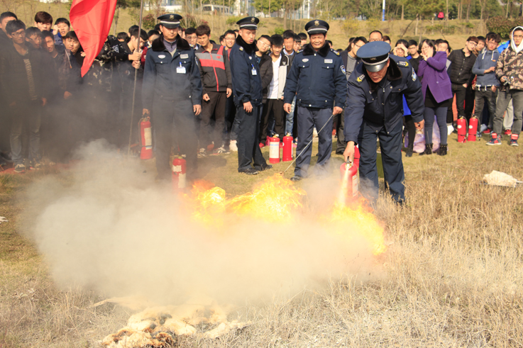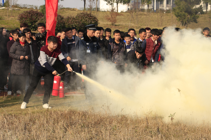 本次演练邀请到了黄麓镇派出所警官王前龙,通过现场讲解的方式让师生掌握了基本防火知识以及消防器材的正确使用技巧。并由学院保卫部门人员现场演示干粉灭火器的使用方法。随后,各系学生代表在保卫人员的指导下,按照演练要求进行灭火演练。