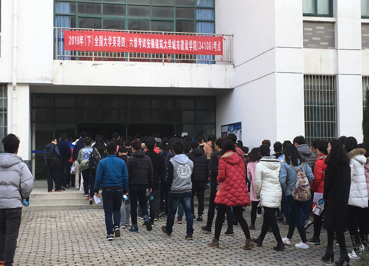 12月17日,2016年下半年全国大学英语四、六级考试顺利举行,我院考点本次共有2240人报名参加英语四、六级考试。其中,报名参加大学英语四级考试共有2016人,报考人数比上半年增加1120人;报名参加大学英语六级考试224人,比上半年增加69人。今年我院除设置教学楼(东)考场外,应广大考生需求,我院还在教学楼(南)增设了英语四级考场34个,让更多符合报名条件的考生能够顺利参加英语四级考试。
