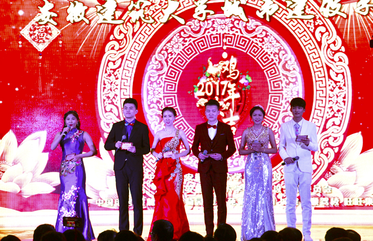 灵猴鸣金辞旧岁,雄鸡唱晓庆新春。12月28日晚,安徽建筑大学城市建设学院2017元旦迎新晚会在学院大礼堂隆重举行。董事长林瀚、院长张伟林、执行董事赵治滨等院领导出席晚会现场并全体师生共贺新年