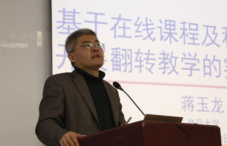 17日下午,邀请到了复旦大学教师教学发展中心副主任、博士生导师蒋玉龙教授,做“基于在线课程及移动互联网开展翻转教学的实践与思考”的主题讲座。蒋玉龙教授以自己多年的移动互联网教学实践经验告诉大家,在现代大学教育新形势下,利用移动互联网开展翻转式教学不仅简便而且有效。他首先指出传统的广播式被动教学形式无法及时有效的了解教学效果,浪费了大量的时间和空间。而利用移动信息化技术开启翻转式课堂教学,学生们可以在线提前观看教学视频,课堂上学生说老师听,这种在线学习的模式可以让老师随时掌握学生的学习进程,而同学们在完成老师布置的课堂任务时也锻炼了学生的自控能力、任务规划能力、表达思辨能力以及专业能力。蒋玉龙强调,知识是可以传授的,能力是必须要锻炼的。翻转式课堂教学以任务驱动为核心,转变教学方法,提高学生参与,互动支撑全程,让学生从被动学习转向主动学习,提质增效,创新教学。而教学方式的转变,必将带来大学教师角色的转变,培训会上蒋玉龙提出了未来大学教师的三个功能转变:一是优质教育资源的组织者和提供者,二是有效的教学活动管理者,三是学生学习问题的有效改进者。丰富的教学经验,前沿的教学实践,真实的案例数据,蒋玉龙教授的培训刷新了大家对移动互联网教学的认知水平,消除了利用手机教学的部分疑虑,激发了大家使用移动互联网教学的冲动和兴趣。