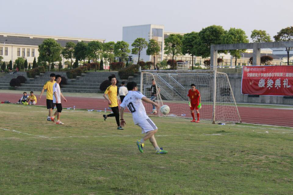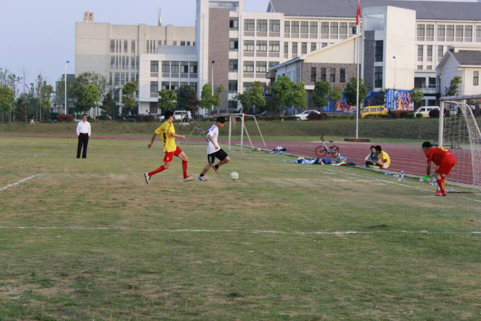 4月22日,由安徽金煌建设集团有限公司及我院教师组成的足球联队(以下简称足球联队)与我院学生足球队(以下简称学生队)在足球场举行了一场足球友谊赛。院长张伟林等现场观看比赛。