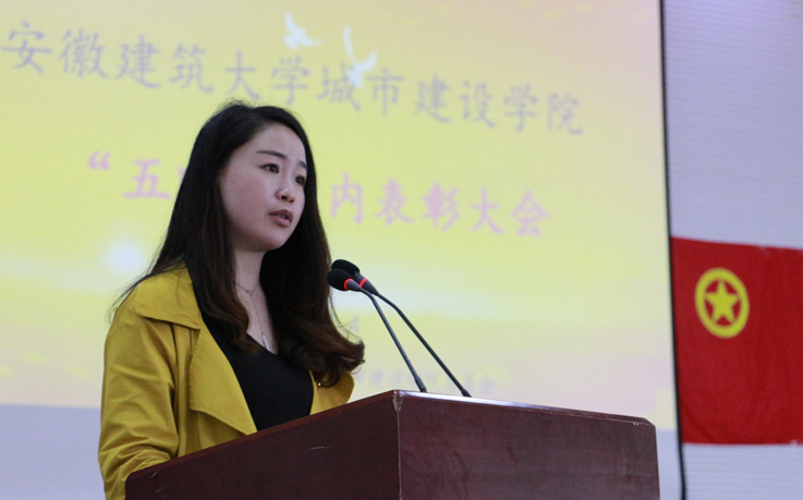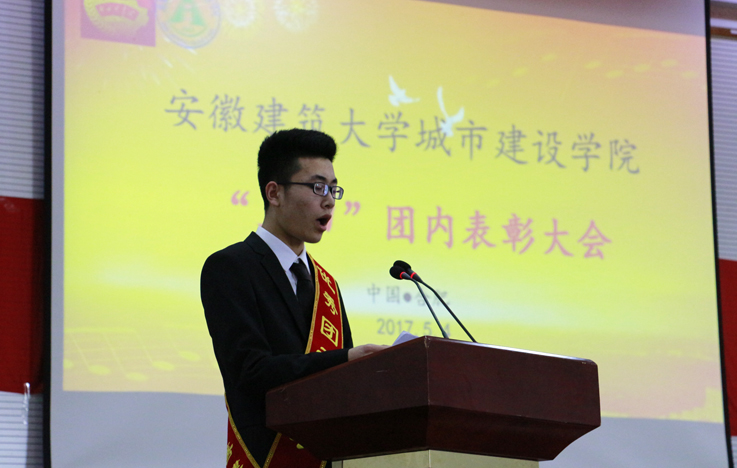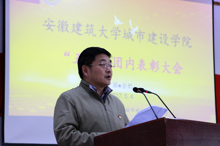 5月4日,为庆祝中国共产主义青年团建团95周年,纪念“五四”运动98周年,安徽建筑大学城市建设学院在图书馆二楼报告厅隆重举行“五四”表彰大会。副院长田园、党委副书记魏宪友、团委书记王利康及部分团员代表参加大会。大会由团委副书记唐玮主持。