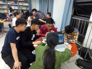 下午17:50,校园赛环节比赛正式开始。在比赛现场,指导老师们一丝不苟,对选手比赛中的每一个环节都核对确认,及时解决参赛选手比赛过程中遇到的各种问题。各参赛选手心无旁骛,高度专心的在系统上操作着,各组队员进行激烈的讨论,争分夺秒,比赛中有细心的队员为防止发生错误,对比赛过程中每一笔交易都做着详细的记录,各组队员分工合作,有条不紊地完成比赛中的各个步骤。