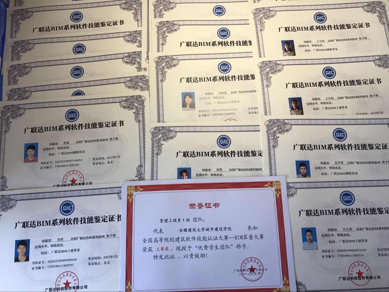 5月14日,管理工程系30名学生参加了2017年全国高等院校建筑软件技能认证大赛——BIM算量大赛,大赛总共参与院校298所,参赛团队378个,经过不懈努力与刻苦地训练,我院代表队脱颖而出,取得全国团体三等奖的好成绩,16人获得广联达GIAC钢筋算量、土建算量熟手级别认证技能证书。14级工程管理专业许文政同学作为我院团队接口人协助老师率队参加大赛,被授予“优秀组织者称号”。