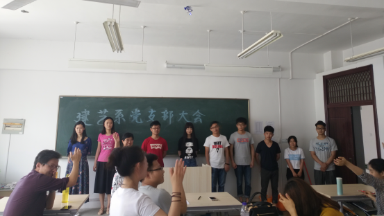 2017年6月8日中午13点,栀子花的芳香弥漫了整个校园,建筑与艺术系党支部在实验楼南408教室召开党支部会议。全系教职工党员、学生党员及预备党员培养对象共52人参加了此次会议。