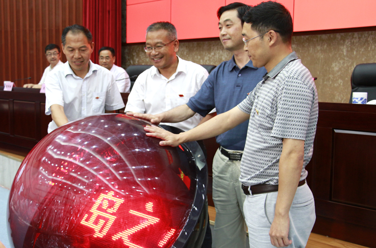 胡启生等四位省市领导按动启动球,宣布“巢湖之心”区域化党建联盟正式成立,并向各联盟成员单位颁发首批活动项目授权书。