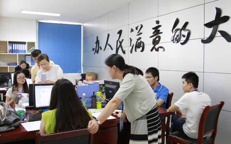 连日的高温酷暑正如我院2017年的招生录取工作一样火爆。截止7月27日,上海、广东、河北、山东、江苏、河南、安徽等省市的招生录取工作已经完毕。从录取情况看,线上生源充足,生源质量有明显提高。7月26日,我院省内本科第二批次招生录取工作现场,院长张伟林、副院长田园以及各系主任来到工作现场,了解招生录取工作进度,并慰问在炎炎烈日下坚守奋战的一线工作人员。