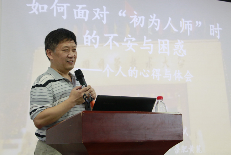 接下来的培训分三个主题依次展开。培训会第一天上午,学院邀请了中国科技大学刘斌教授作“如何面对‘初为人师时’的不安与困惑”主题讲座,分别从上课前、课堂之上、课堂之外、课堂教学与科研等四个方面就如何能成长为一名合格的大学教师进行了精彩生动的演讲,并提出了“看、听、研、思、行”的五字方针,鼓励应用型高校教师结合教学工作积极做好教学和科学研究,不断提升自己的学术专业水平。