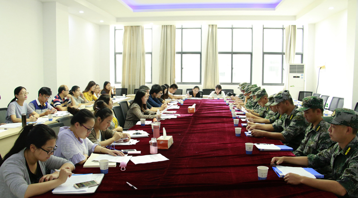 9月5日下午,安徽建筑大学城市建设学院在图书馆一楼会议室召开军训工作协调会议。副院长田园出席会议,学院军训领导小组有关成员及巢湖市人武部承训部队官兵参加会议。
