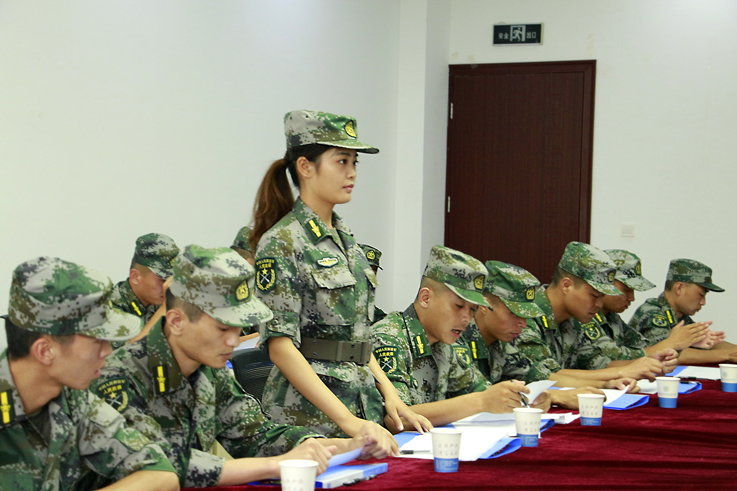 会上,巢湖市人武部承训部队官兵与各系指导员举行了简短的对接见面会,双方将在军训期间通力合作,协调完成本次军训的主要工作内容,保证本次军训任务圆满完成。值得一提的是,今年学院迎来了一位女教官,她将担任二营七连的连长。