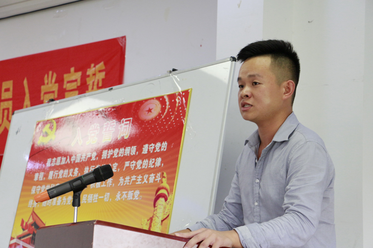 新党员代表14级工程管理专业李子含、14级土木工程专业刘正义分别发言,表达了对党组织的忠诚和为党的事业奋斗终生的信念。“大学的时光年轮已经悄然来到了大四,我们要以入党作为人生的新起点,新激励,以更高的标准来规范自己,以更高的要求来鞭笞自己,向老同志学习,向优秀共产党员学习,发挥黄麓新校区第一届学生党员毕业生的榜样模范作用,积极进取,与时俱进,以优异的成绩回报党和社会,争做一名合格的中国共产党员。”