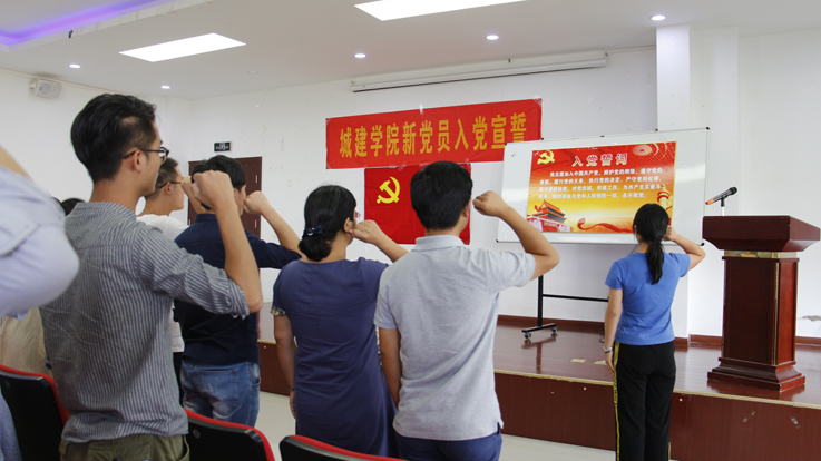 9月13日,新发展党员入党宣誓仪式在图书馆一楼报告厅隆重举行。7名教职工预备党员、86名学生预备党员高举右拳,在领誓人的带领下,面对党旗庄严宣誓。大会由党委副书记魏宪友主持,各支部书记参加大会。