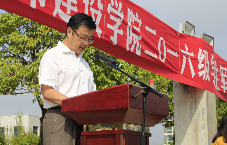 军训汇报表演结束后,学生处处长王利康宣读2016级新生军训先进集体、先进个人表彰决定。院领导为4个优秀连队和81名先进个人代表颁发锦旗和证书。管理系靳松老师、建艺系16环境设计专业朱涵宇同学分别作为教师代表和先进个人代表发言。