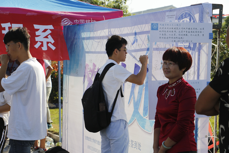 迎风表扬的彩旗,温馨活泼的欢迎条幅,个性化的新生签名墙,温馨的入学须知海报,排列整齐的各系迎新帐篷,图书馆前的人头攒动,让整个校园充满了浓厚的迎新氛围。