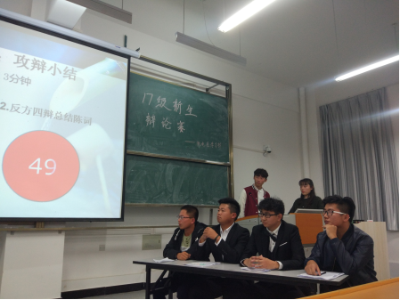 比赛开始,双方辩手相互阐述自己的观点后,相互提问,相互反驳,而自由辩论环节则使辩论赛达到了白热化阶段,辩手们唇枪舌剑,以有理有据的语言来反驳对方观点中的漏洞。精彩的辩论引来同学们一阵阵热烈的掌声。