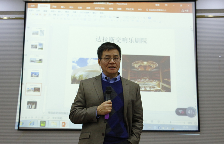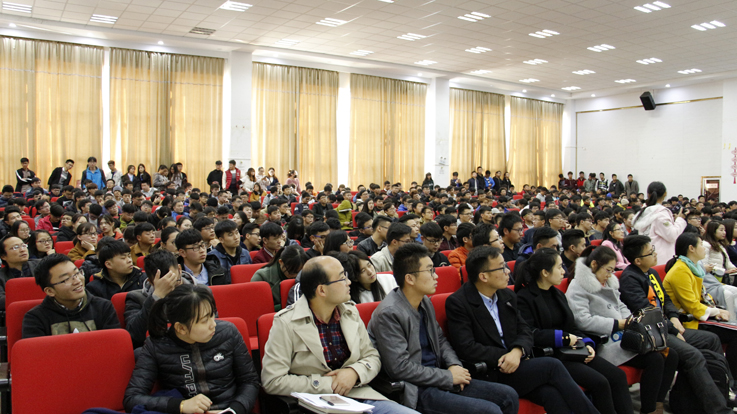 受聘仪式结束后,赵鹏在图书馆二楼报告厅随即开展了题为《浅谈美国建筑工程的策划、设计与管理的实践经验》的讲座。整场讲座案例丰富,内容生动,吸引了众多土木工程专业和城市规划专业的学生前来听讲,讲座现场座无虚席。赵鹏教授在我院的第一次讲座圆满成功。