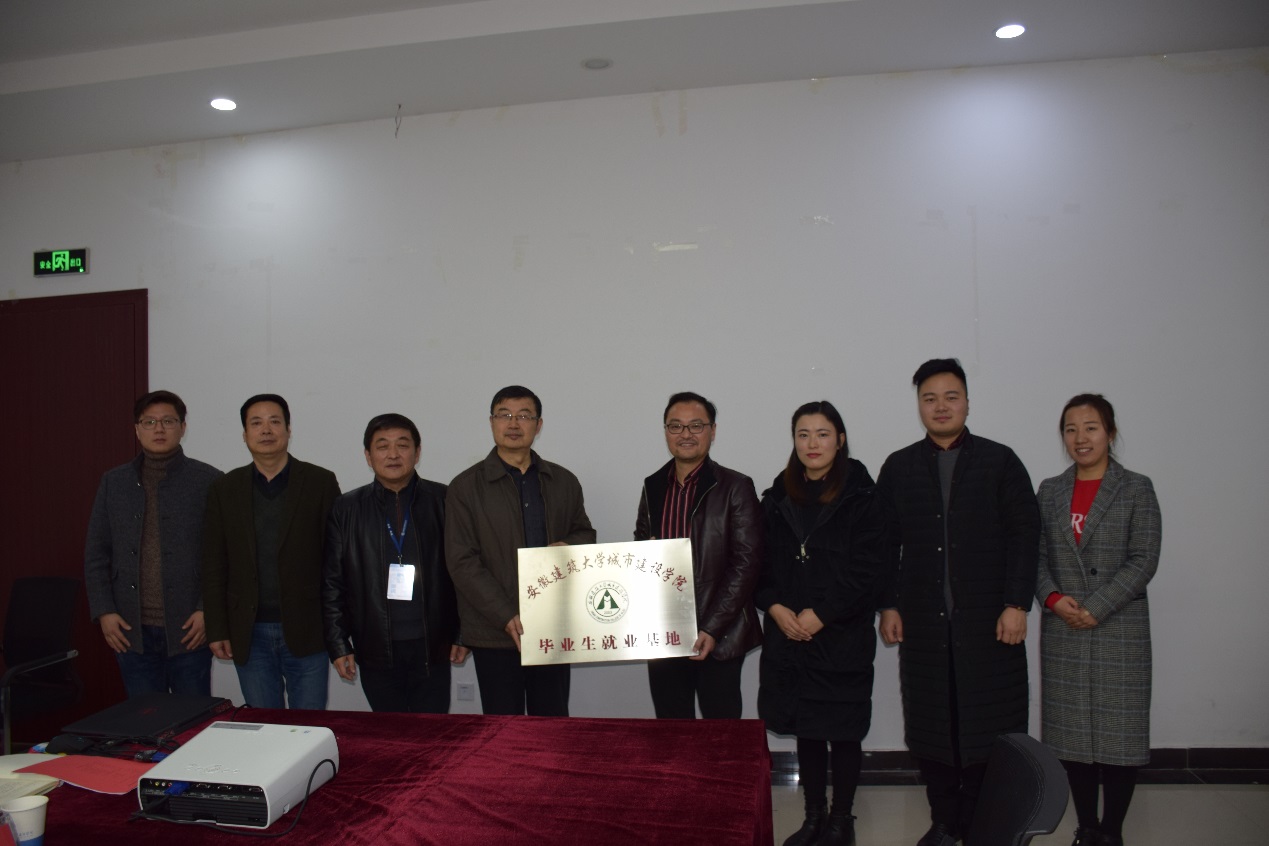 为凝聚学院与社会的力量,促进教育教学改革,拓宽学生就业的渠道,同时也为企业招募优秀人才,充分发挥校企双方的优势。安徽建筑大学城市建设学院诚挚邀请山水装饰集团副总裁裴智松先生等一行,于12月29日上午来院进行考察调研,并在院图书馆第二会议室参与了校企合作座谈会。我院院长张伟林、副院长田园、就业指导处处长侯为民等参加了此次会议。会议由侯为民主持,双方经过深度讨论后,签订了安徽建筑大学城市建设学院毕业生就业基地协议,并举行了挂牌仪式。