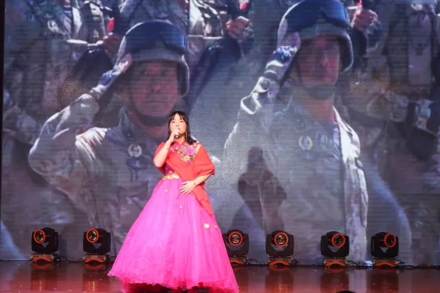 全场晚会的焦点是舞台剧《以梦为马》和朗诵及合唱《中华魂祖国颂》。《以梦为马》,用表演和朗诵的形式展现红军在长征途中克服艰难险阻,追逐梦想的过程。梦想是穿行在万家灯火照亮归途的一盏烛光,同时更像一匹骏马,带领着希望穿过层层阻隔,引领着前进的方向。学院老师参与表演的《中华魂祖国颂》,气势磅礴的朗诵中又蕴含深情,礼赞腾飞进步的祖国。精彩的表演点燃全场观众的激情,把晚会推向了另外一个高潮。