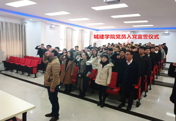 2018年3月8日,新发展党员入党宣誓仪式在图书馆一楼报告厅隆重举行。1名教师预备党员、63名学生预备党员高举右拳,在领誓人的带领下,面对党旗庄严宣誓。大会由党委副书记魏宪友主持,各学生支部书记参加大会。