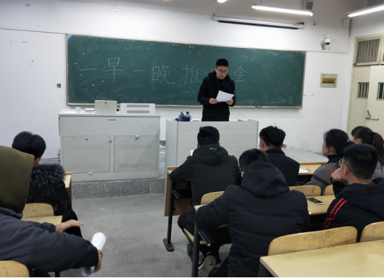 2018年3月19日下午五点,管理工程系17级辅导员张洲老师于东教102召开一早一晚推进工作17资产评估、17工程造价,、17人力资源17电气工程及自动化各班班长学习委员参加此次会议。