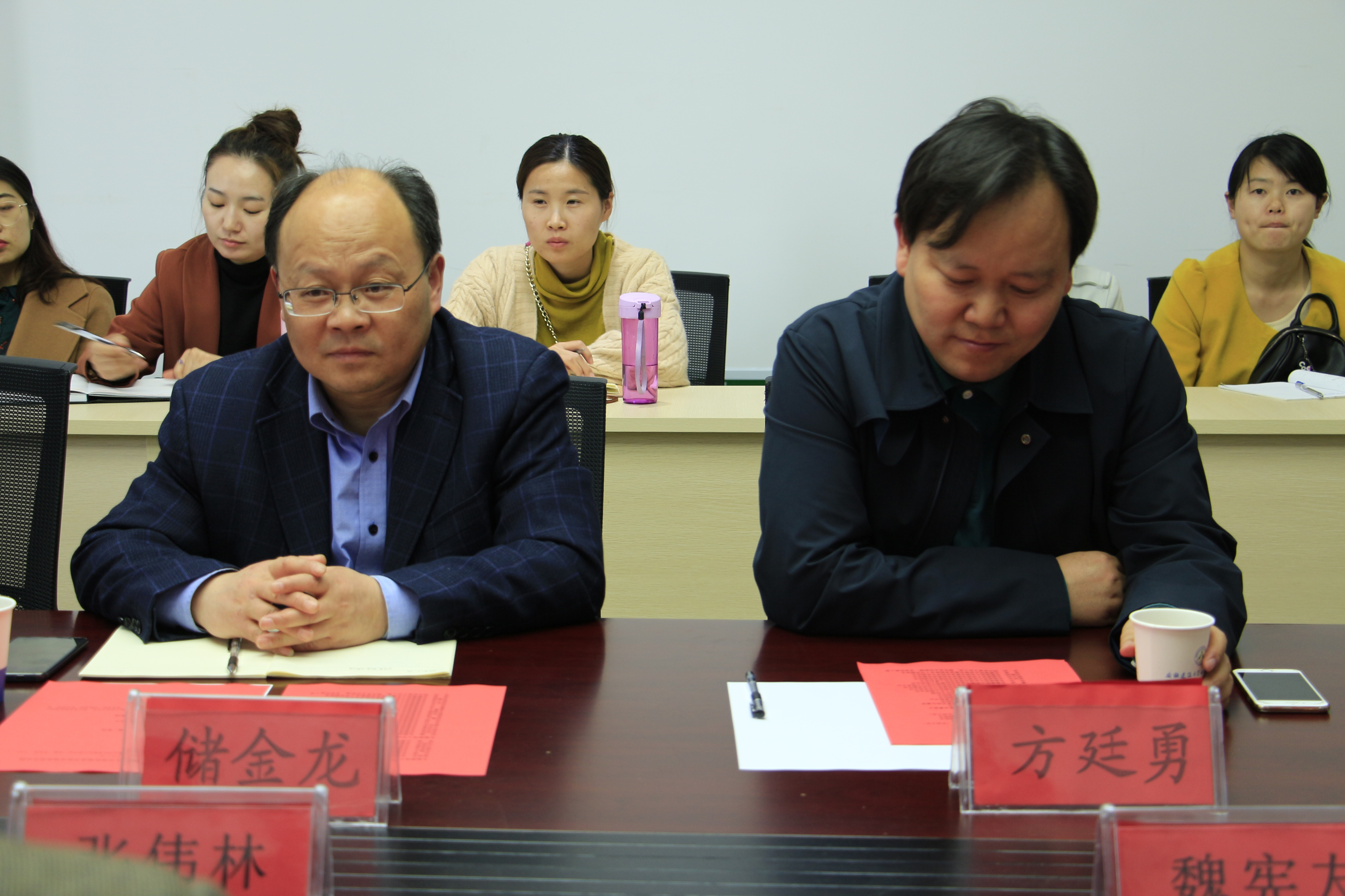 3月26日下午,我院在图书馆一楼第一会议室召开安徽建筑大学帮扶城建学院发展座谈会,会议主要围绕安徽建筑大学对我院2018年评建工作帮扶及日常工作指导开展。安徽建筑大学副校长黄显怀带领教务处长刘瑾、土木工程学院副院长吴德义、建筑与规划学院院长储金龙、环境与能源工程学院院长方廷勇、材料与化学工程学院院长冯绍杰、艺术学院副院长邢瑜一行来到我院,对城建学院的发展进行帮扶座谈。我院董事会领导、院党政领导、各系主任、系主任助理、专业负责人及各相关职能处室负责人等参会。