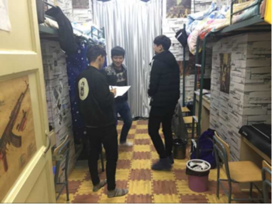晚上九点左右,建艺系学生会生活部成员在宿舍楼下集合,按照计划有序地对学生宿舍进行检查。此次所检查的主要为5栋、7栋及8栋建艺系学生宿舍,主要涉及宿舍卫生、安全等方面的内容,以确保同学们有一个舒适、安全的休息环境。
