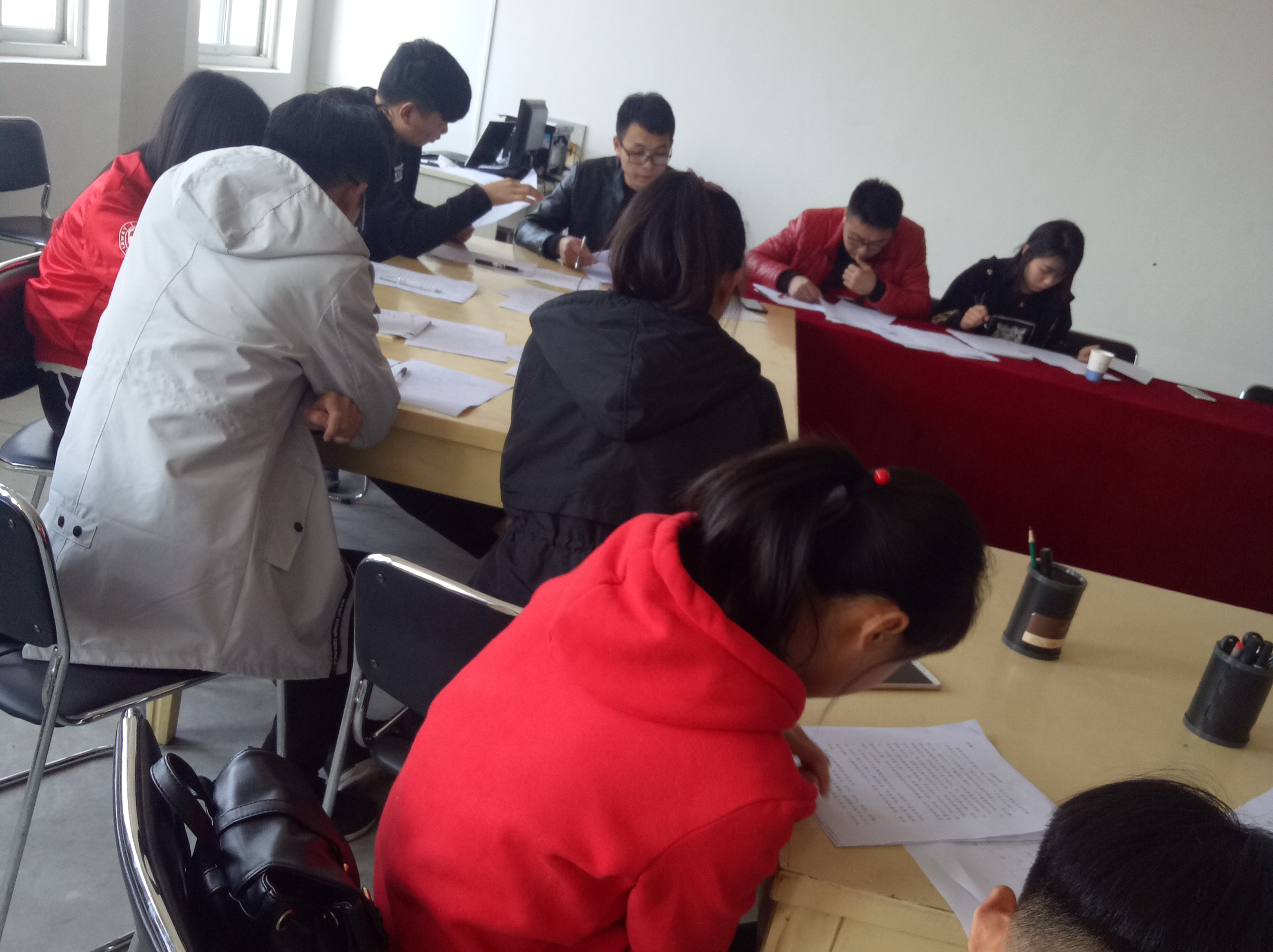 为加强系与院学生会的工作交流,提升大学生们的文化素养,体现自身文化水平,3月23日下午,我院学生会学习部组织的“活法”征文的评比在我系办公室进行。