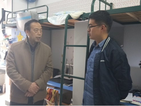 院领导着重检查了学生寝室是否存在安全隐患,并与学生就寝室精神文明建设制度与学生作息时间进行沟通交流。