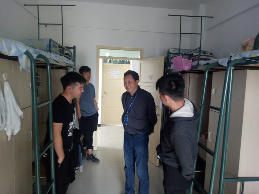 院领导着重检查了学生寝室是否存在安全隐患,并与学生就寝室精神文明建设制度与学生作息时间进行沟通交流。