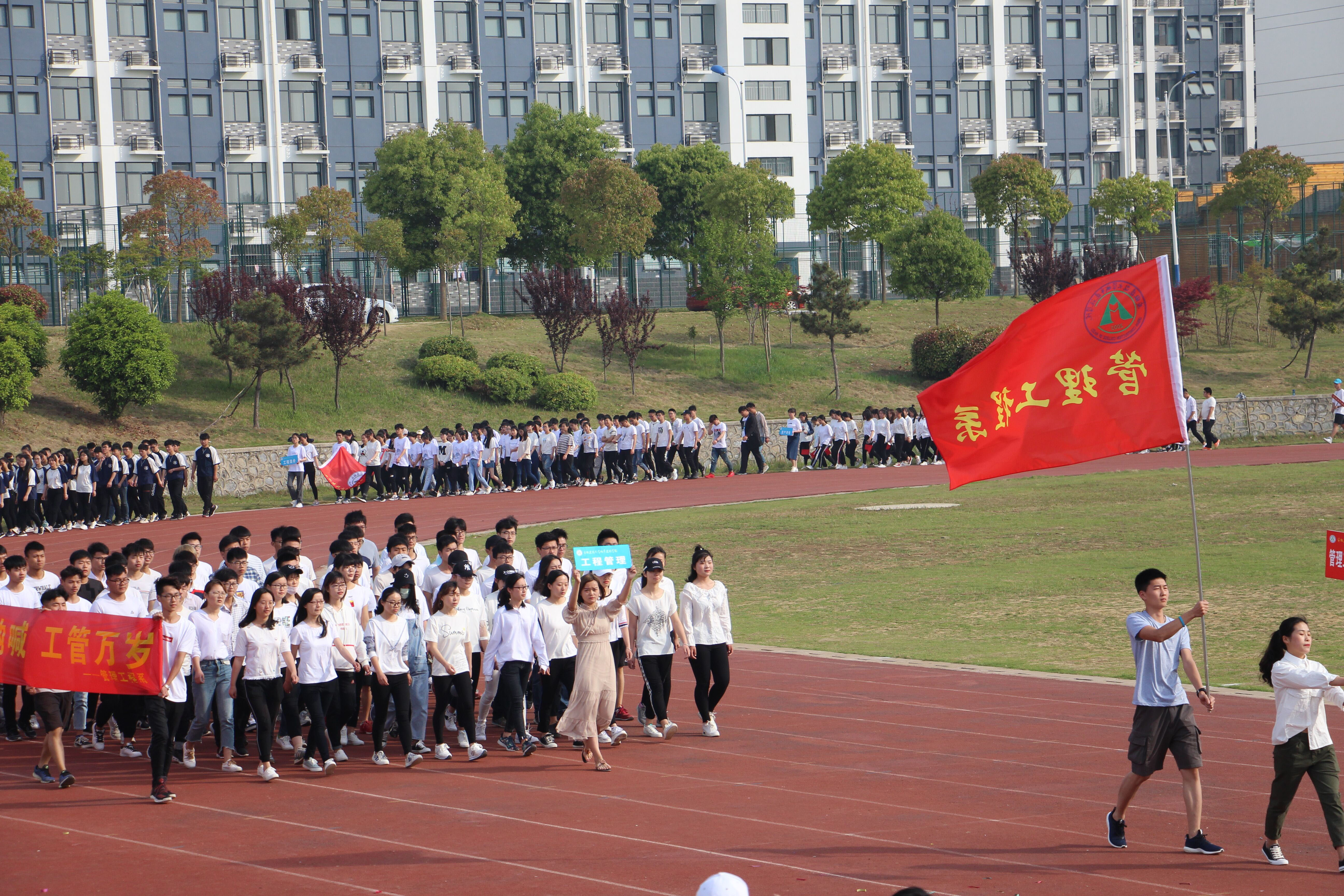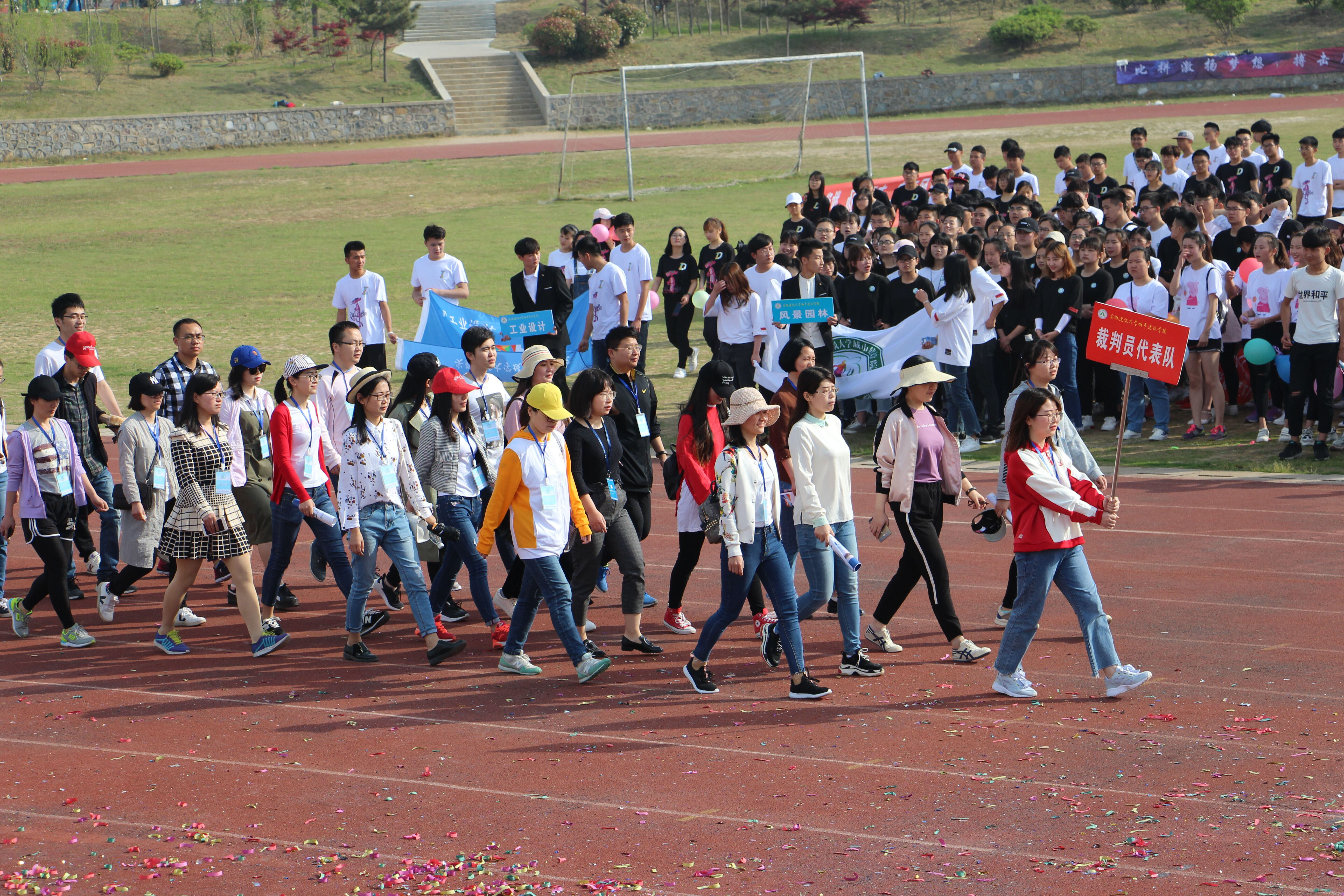 4月21日,春风和煦,又一个人间四月天,在这“等闲识得东风面,万紫千红总是春”的季节里,安徽建筑大学城市建设学院2018年春季田径运动会在校足球场拉开帷幕。城建学院院长张伟林,执行董事赵治滨,院党委副书记魏宪友,副院长王志建、吴约、田园,院长助理柏耀文,各系主任及相关处室负责人出席开幕式