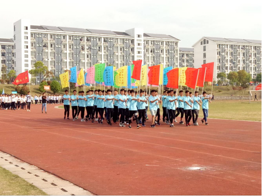 紧接着便是各系运动员代表队,他们迈着统一的步伐,气势昂扬地走过主席台,挺拔的身姿,无不彰显出其必胜的信念。
