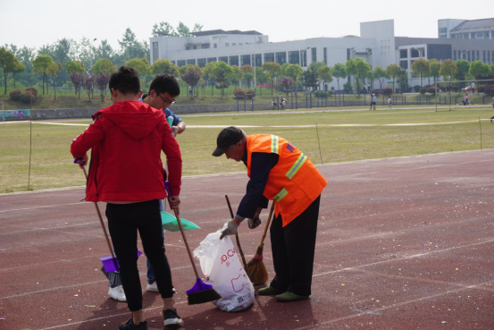 运动会顺利的进行,也离不开在幕后默默付出的人。学生会的辛勤筹划,志愿者耐心工作,保证运动会有条不紊的进行着。许多老师也参与其中,帮助记录成绩,不畏刺眼的阳光,为学生带来方便。各个班的班委也准备着水、纸巾、药等物资,做好运动员的后勤保障工作。还有那些为运动员加油的学生,即使热的满头大汗,也没有一句怨言。