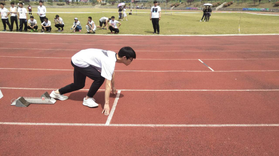 运动会开始,男子100米打响了第一枪,这个项目有电子专业的同学参加比赛,虽然跑步不是他们的专职,但是在短短的100米之内,他们展现了他们的爆发力和他们的拼搏精神,一路冲刺,一路追赶。